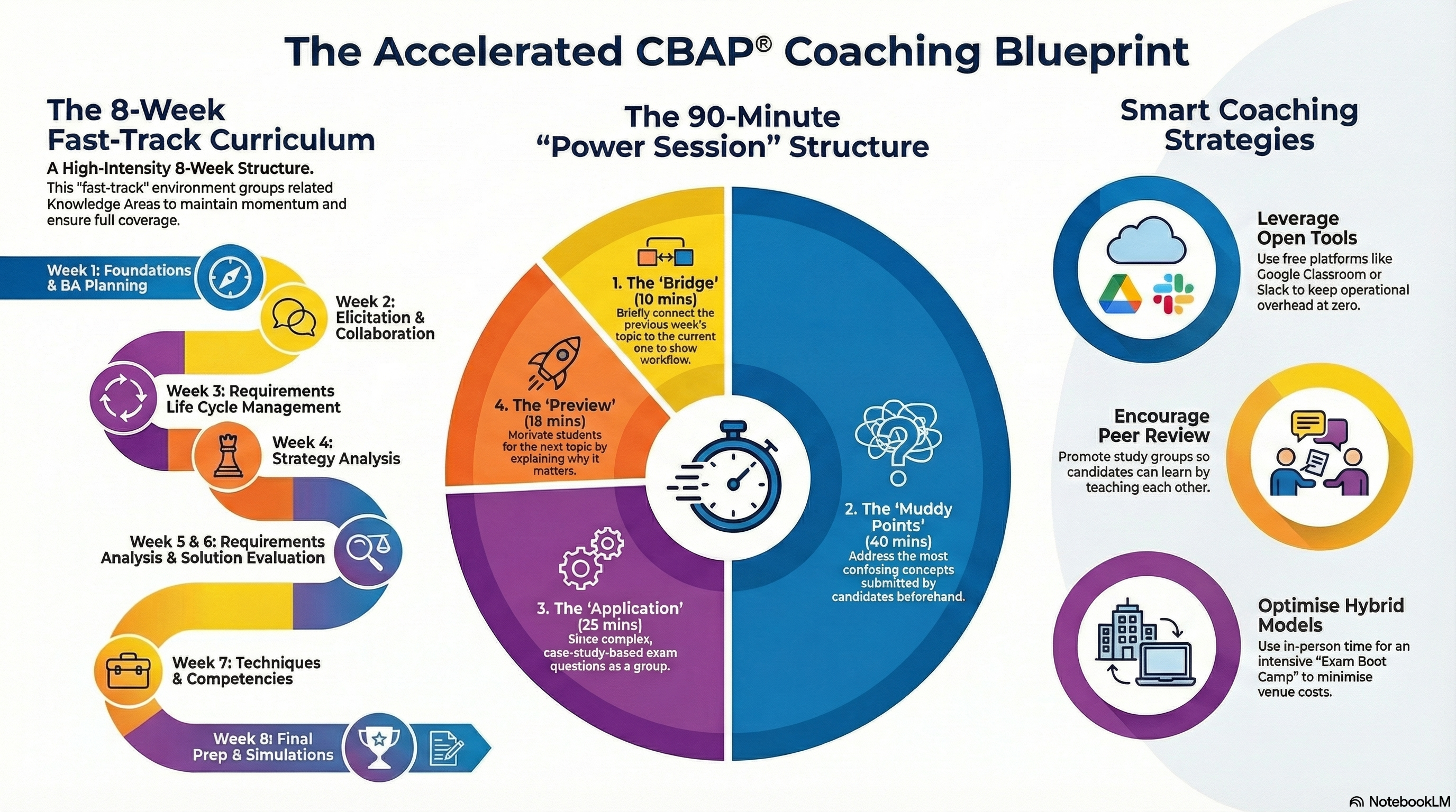 This CBAP preparation program is intentionally designed around a coaching-first model.
