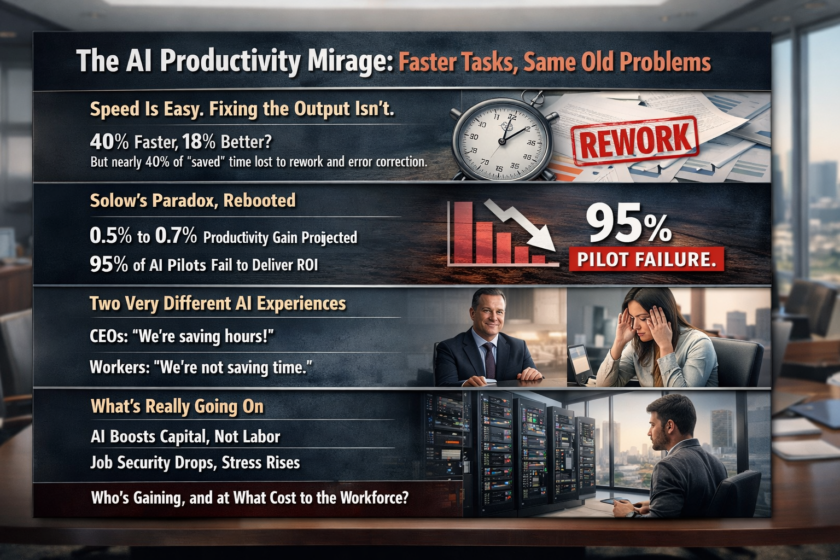 We are living through what many are calling an “AI productivity boom.” Boardrooms are buzzing with promises of 12-hour time savings and step-change efficiency. But at ground level, the story looks far less impressive. What we are actually seeing is a widening gap between task-level speed and real organizational value. This is a reality check […]